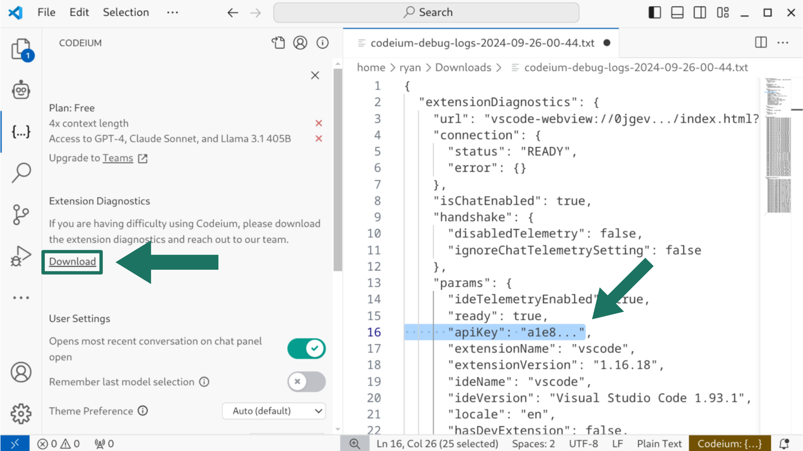 Alternative: Obtain Codeium API key using VS Code¶